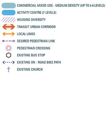 The precinct should be developed as a vibrant mixed-use commercial and residential corridor with quality designed built form and improved amenity and access, supporting a stronger local service hub.